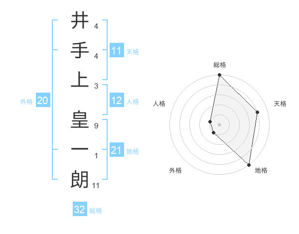 井手上 皇一朗さんを姓名の画数から五運を鑑定