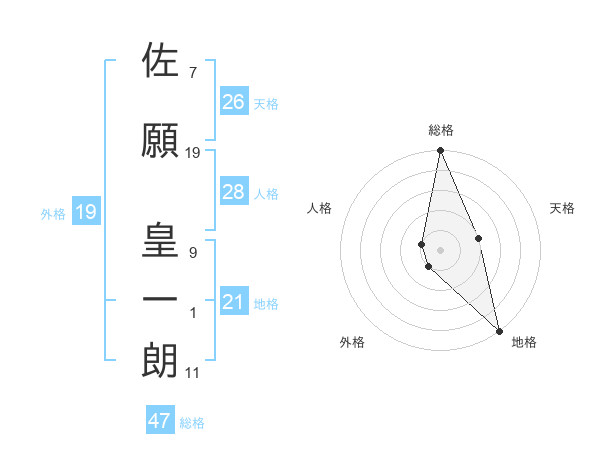 佐願 皇一朗さんの総格は47画の5点!