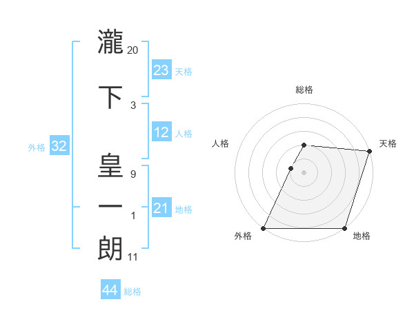 瀧下 皇一朗さんを姓名の画数から五運を鑑定