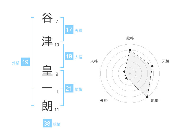 谷津 皇一朗さんを姓名の画数から五運を鑑定