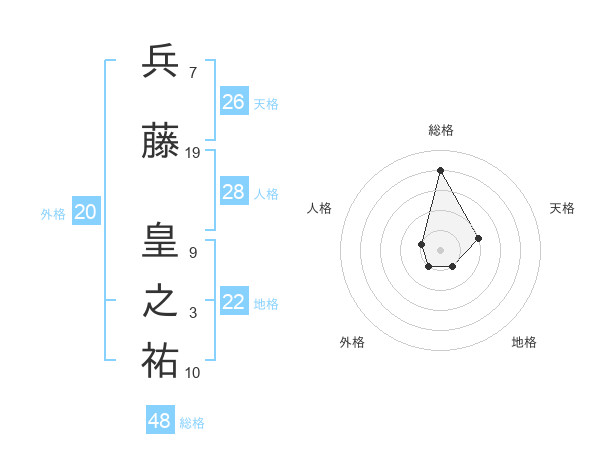 兵藤 皇之祐さんを姓名の画数から五運を鑑定