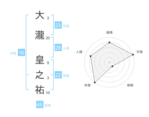 大瀧 皇之祐さんを姓名の画数から五運を鑑定