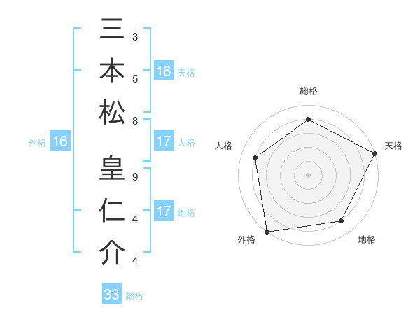 三本松 皇仁介さんを姓名の画数から五運を鑑定