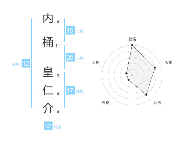 内桶 皇仁介さんの総格は32画の5点!