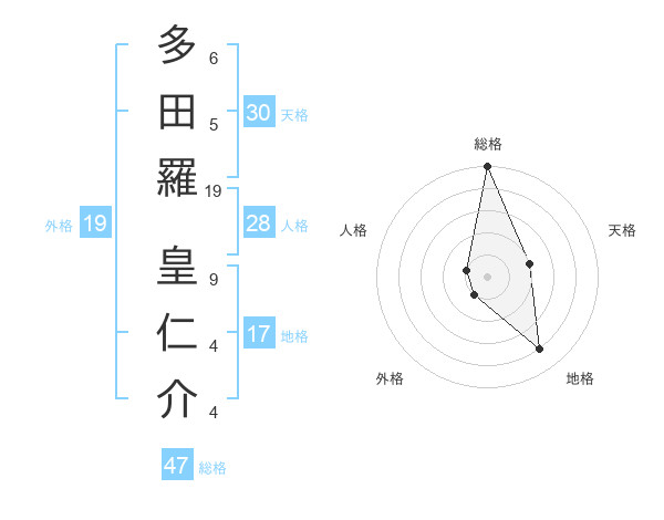 多田羅 皇仁介さんの総格は47画の5点!