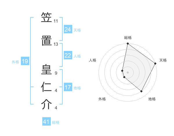 笠置 皇仁介さんの総格は41画の5点!