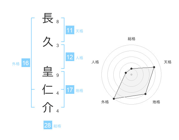長久 皇仁介さんを姓名の画数から五運を鑑定