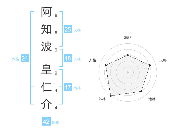 阿知波 皇仁介さんを姓名の画数から五運を鑑定