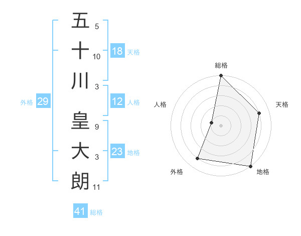 五十川 皇大朗さんの総格は41画の5点!