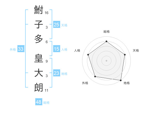 鮒子多 皇大朗さんを姓名の画数から五運を鑑定