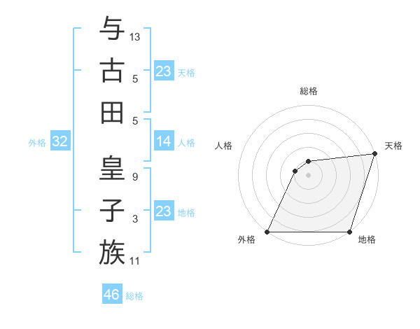 与古田 皇子族さんを姓名の画数から五運を鑑定