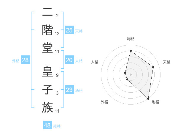 二階堂 皇子族さんの地格は23画の5点!