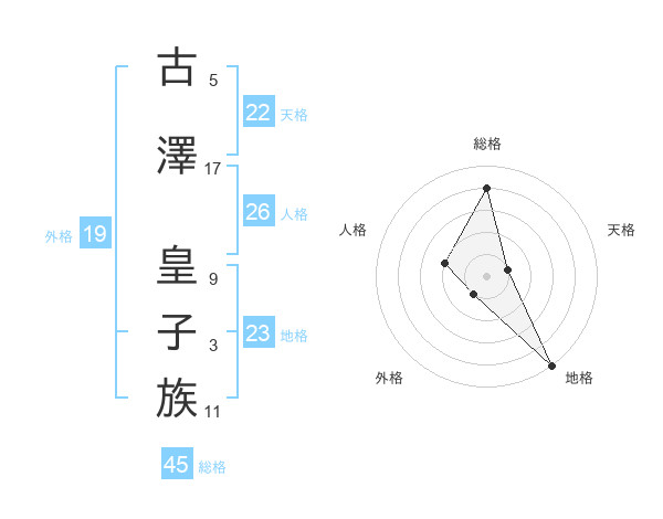 古澤 皇子族さんの総格は45画の4点!