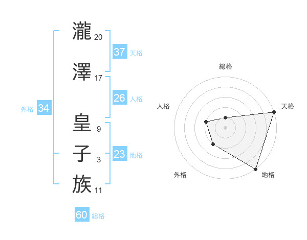 瀧澤 皇子族さんを姓名の画数から五運を鑑定