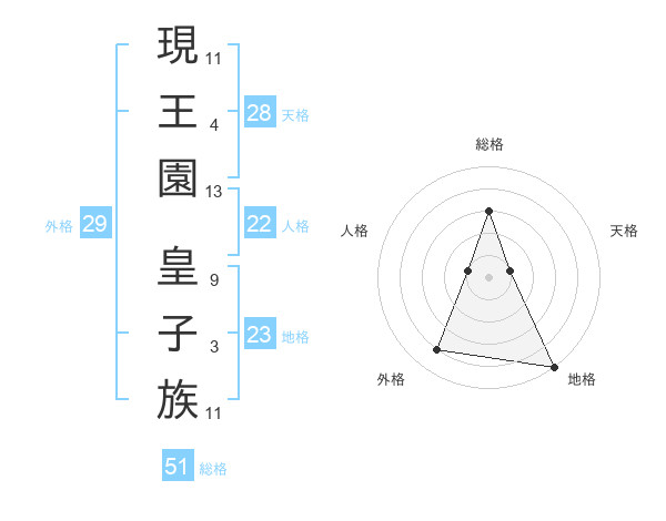 現王園 皇子族さんを姓名の画数から五運を鑑定