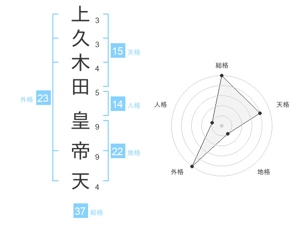 上久木田 皇帝天さんの総格は37画の5点!