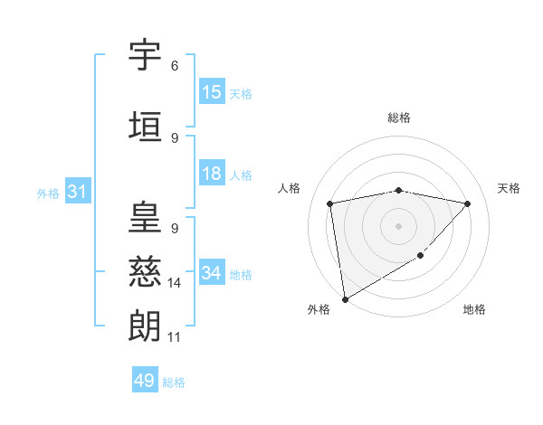 宇垣 皇慈朗さんの天格は15画の4点!