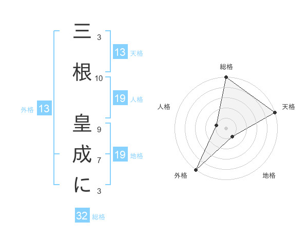 三根 皇成にさんの外格は13画の5点!
