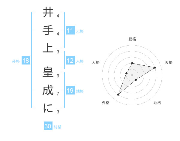 井手上 皇成にさんの総格は30画の2点!