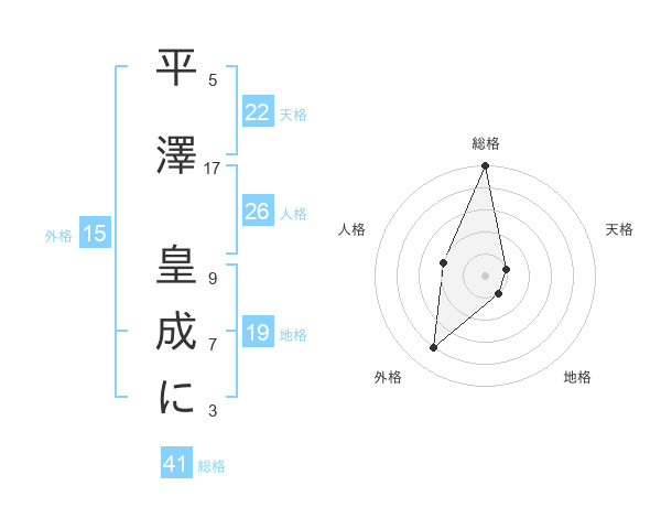 平澤 皇成にさんを姓名の画数から五運を鑑定