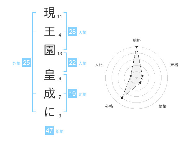 現王園 皇成にさんを姓名の画数から五運を鑑定