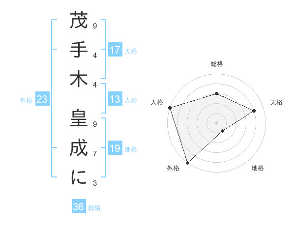 茂手木 皇成にさんの外格は23画の5点!