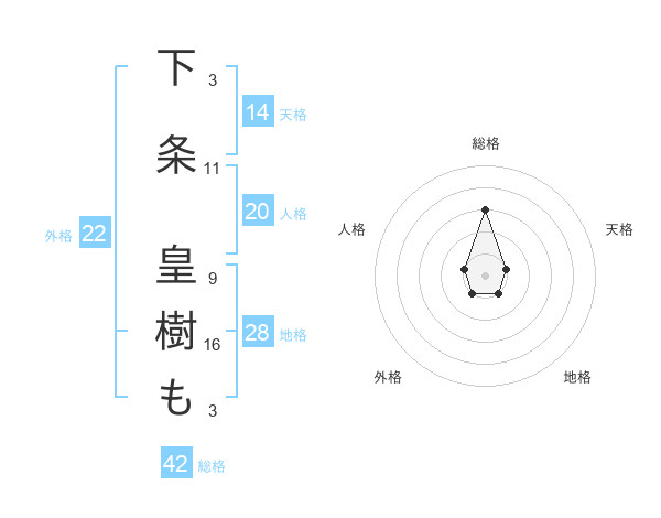 下条 皇樹もさんを姓名の画数から五運を鑑定