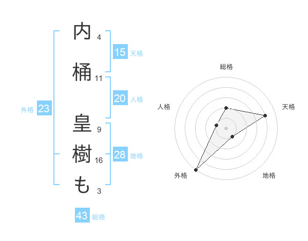 内桶 皇樹もさんの外格は23画の5点!