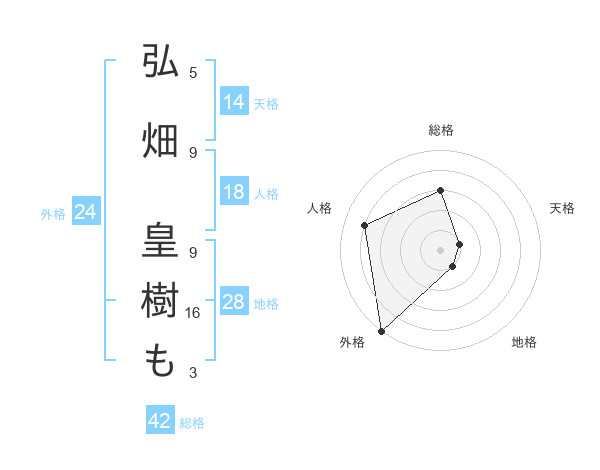 弘畑 皇樹もさんの外格は24画の5点!