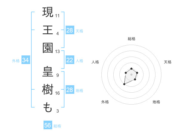 現王園 皇樹もさんを姓名の画数から五運を鑑定