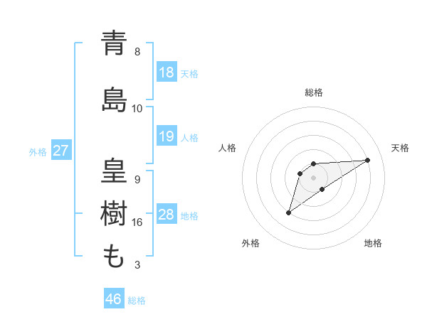 青島 皇樹もさんを姓名の画数から五運を鑑定