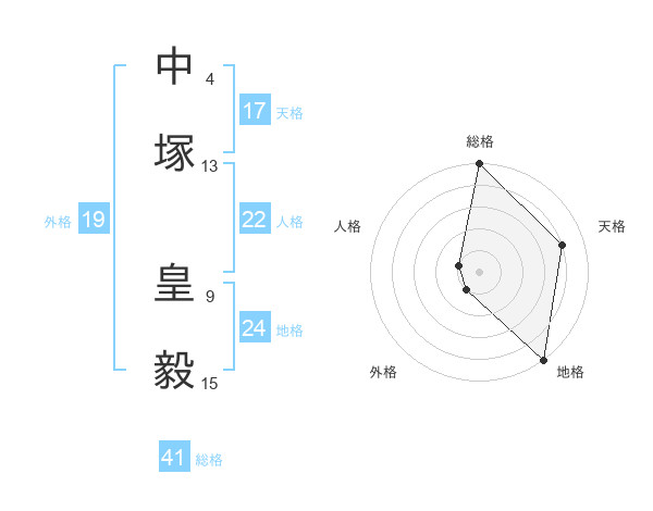 中塚 皇毅さんを姓名の画数から五運を鑑定