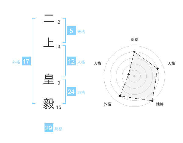 二上 皇毅さんを姓名の画数から五運を鑑定