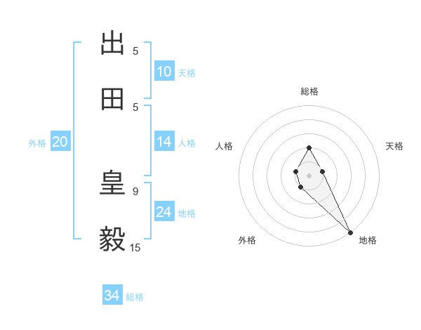 出田 皇毅さんを姓名の画数から五運を鑑定