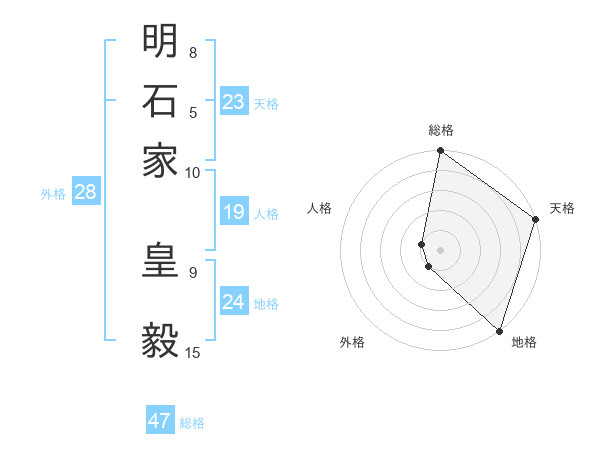 明石家 皇毅さんを姓名の画数から五運を鑑定