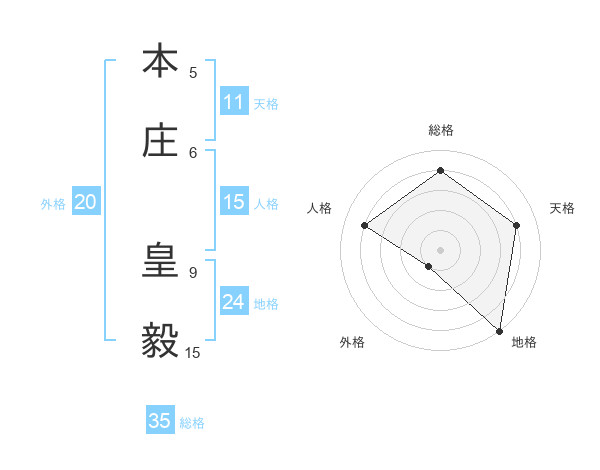 本庄 皇毅さんの地格は24画の5点!