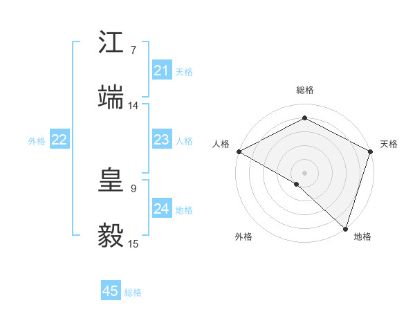 江端 皇毅さんの総格は45画の4点!