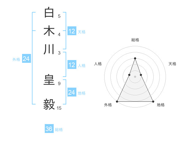 白木川 皇毅さんを姓名の画数から五運を鑑定
