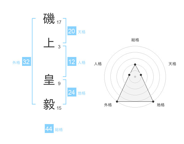 磯上 皇毅さんの外格は32画の5点!
