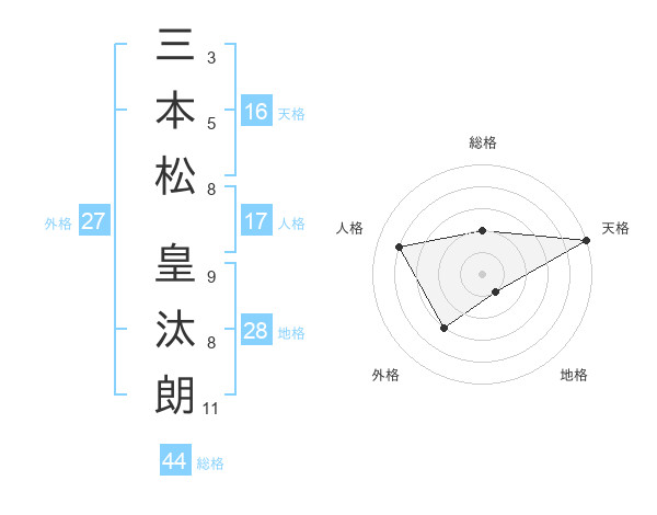三本松 皇汰朗さんを姓名の画数から五運を鑑定