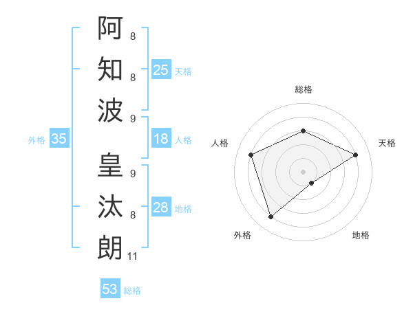 阿知波 皇汰朗さんを姓名の画数から五運を鑑定