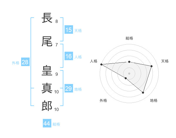 長尾 皇真郎さんを姓名の画数から五運を鑑定