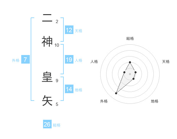 二神 皇矢さんの総格は26画の2点!
