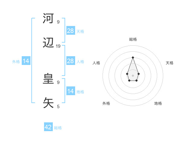 河辺 皇矢さんを姓名の画数から五運を鑑定