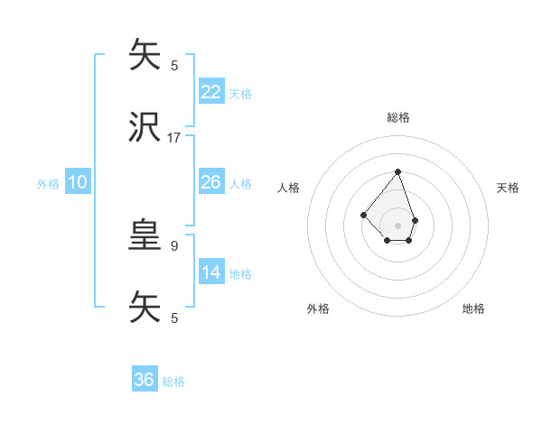 矢沢 皇矢さんを姓名の画数から五運を鑑定