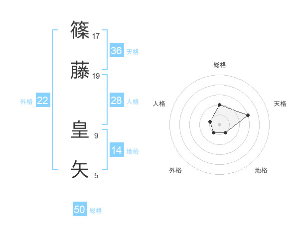 篠藤 皇矢さんを姓名の画数から五運を鑑定