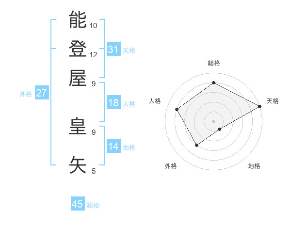 能登屋 皇矢さんを姓名の画数から五運を鑑定