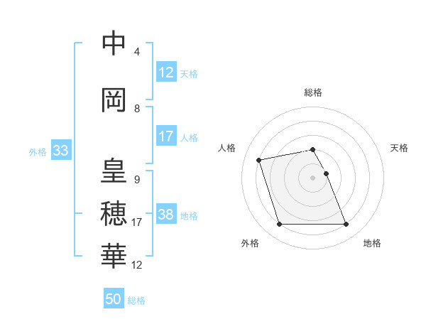 中岡 皇穂華さんの総格は50画の2点!