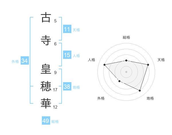 古寺 皇穂華さんの総格は49画の2点!