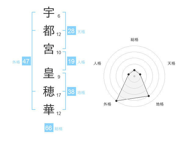 宇都宮 皇穂華さんを姓名の画数から五運を鑑定